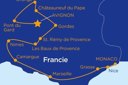 Naše trasa zahrnuje významná města a přírodní krásy Provence, jako jsou: