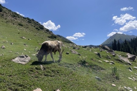 Součástí zájezdu je polopenze, která zahrnuje tradiční kyrgyzskou kuchyni, včetně pokrmů jako beshbarmak a manti.