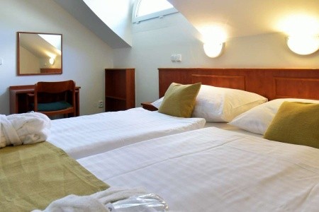 - Superior pokoje – vybavení jako u Standard pokojů, navíc 1× láhev minerální vody, kávový a čajový set s rychlovarnou konvicí, hotelová kosmetika a župan zdarma.