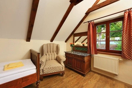 Penzion nabízí útulné pokoje, které jsou vybaveny základním nábytkem. I když vybavení může být starší, pokoje jsou čisté a pohodlné. Některé pokoje mají střešní okna s výhledem na krajinu a řeku, což přidává na atmosféře. Je dobré mít na paměti, že penzion nemá výtah a pokoje v podkroví mohou být méně přístupné pro rodiny s malými dětmi nebo staršími osobami.